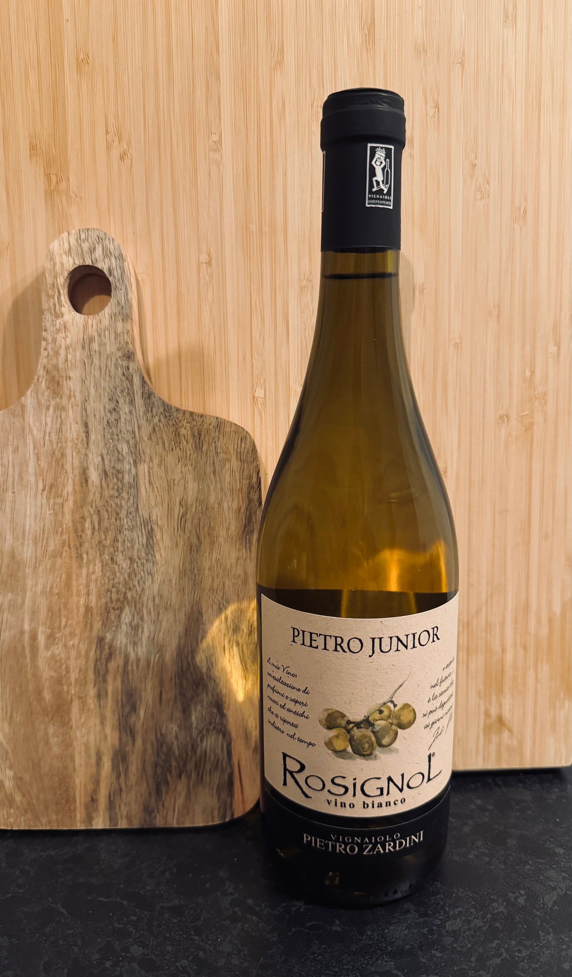 De Rosignol Bianco, een mooie witte wijn van Pietro Zardini. Voor deze wijn wordt er een selectie gemaakt van alleen de beste druiven, waarna deze handmatig worden geplukt. De druiven worden onder koele temperaturen geperst en vergist, om zo de primaire frisse fruitaroma’s te behouden. Een heerlijke frisse wijn als aperitief of tijdens een diner!